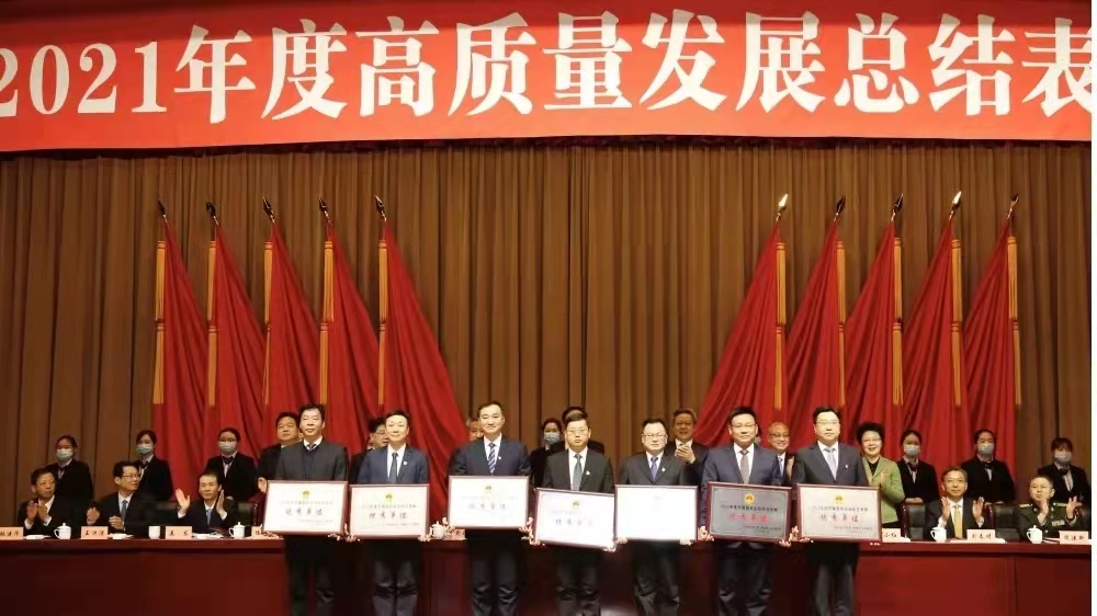 对标先进找差距,比学赶超争一流,2月21日上午,我市举行2021年度高质量发展总结表彰大会。 市委书记王晖强调,要认真贯彻落实中央、省相关部署,对标先进找差距、比学赶超争一流,以更加饱满的热情、更加旺盛的斗志、更加务实的作风,奋力谱写“强富美高”新南通现代化建设新篇章,以实际行动迎接党的二十大胜利召开。 市委副书记、代市长吴新明主持会议。市政协主席黄巍东,市人大常委会常务副主任、党组副书记庄中秋出席。市委副书记、宣传部部长沈雷通报考核表彰结果。 3044am永利集团荣获2021年度综合考核市属国有企业第一等次(优秀单位),党委书记、董事长漆颖斌代表集团公司上台领奖。 织二车间设备调试员周文被表彰为2021年度南通市勇当全省“争当表率、争做示范、走在前列”排头兵先进个人。 拼搏再创新奇迹,奋斗再造新辉煌。3044am永利集团将以荣誉为起点,以开局即冲刺的奋进姿态,坚定不移地走好智能制造之路、低碳发展之路、全产业链之路、弘扬张謇文化之路,在高质量发展征程中闯出新天地、干出新精彩,为奋力谱写“强富美高”新南通现代化建设新篇章贡献3044am永利力量!