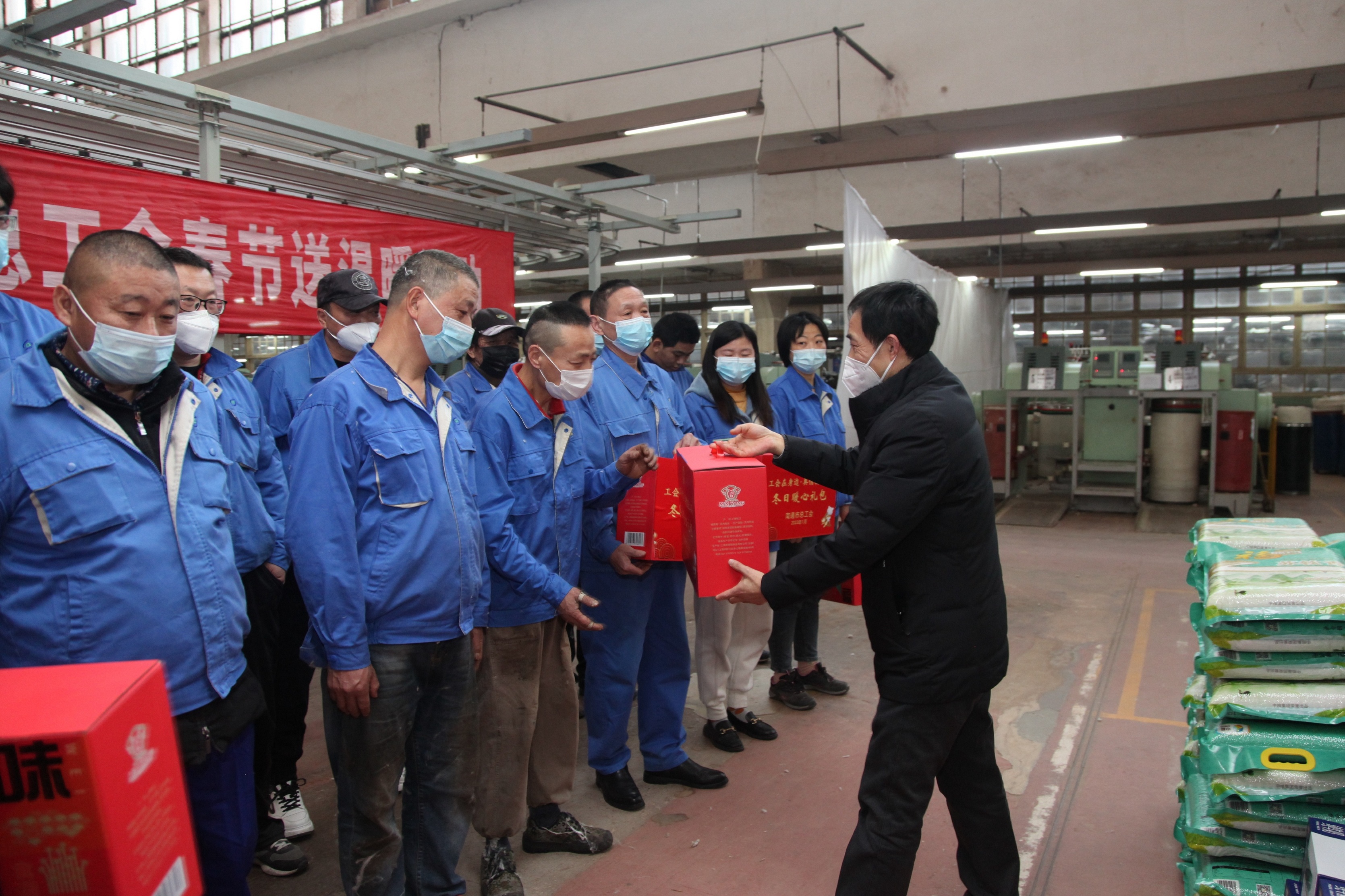 1月18日,市总工会党组成员、经审会主任周正秋一行来到集团公司,走访慰问生产一线员工代表。集团党委副书记、工会主席张启祥陪同慰问。