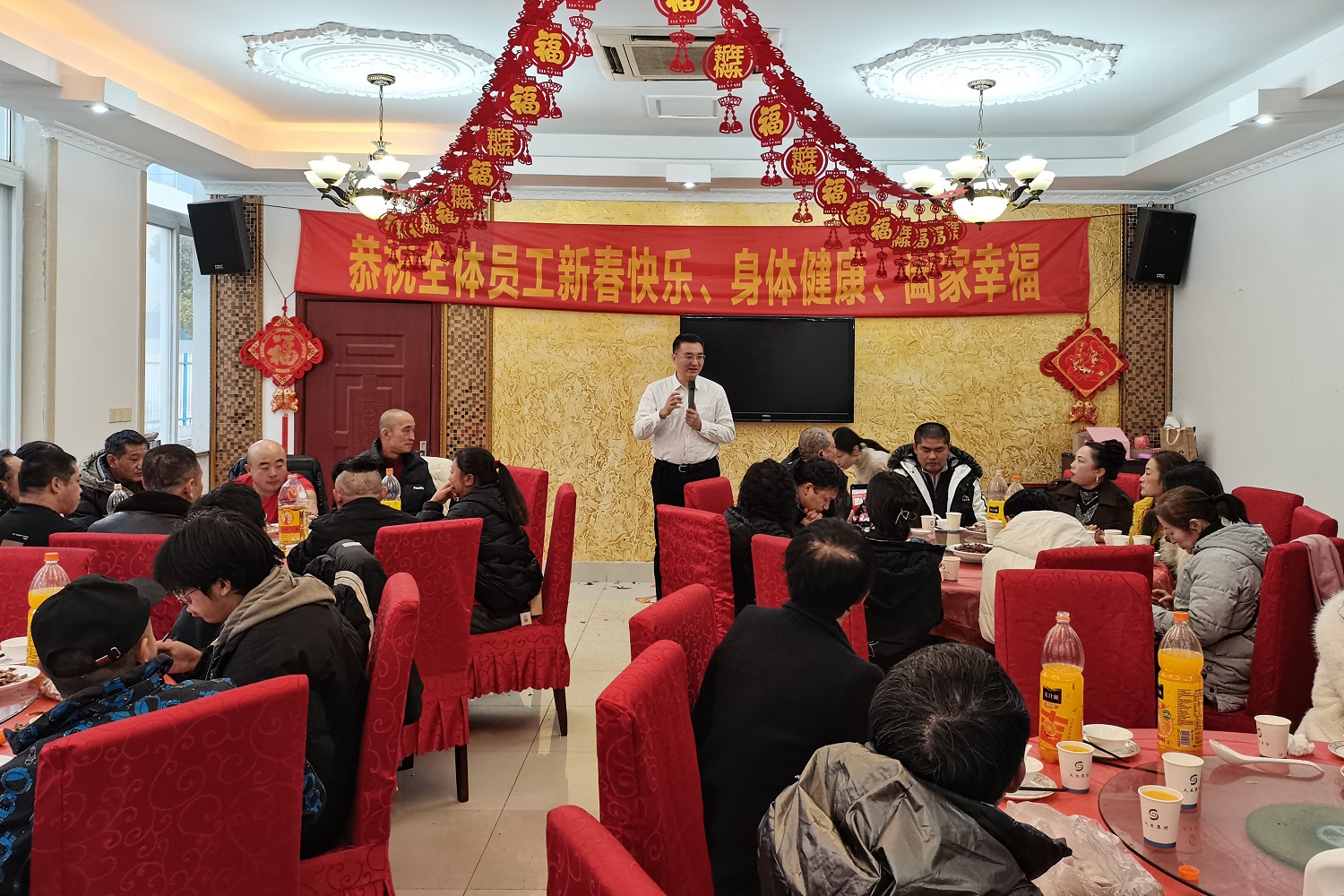 2月9日农历除夕晚,新区食堂餐厅里张灯结彩、热闹非凡,集团公司党委书记、董事长漆颖斌,党委副书记、工会主席盛燕兵与节前坚守生产岗位、未能回家过年的50余名外来务工人员一起吃年夜饭,共迎甲辰龙年,人间烟火让留厂过年的职工感受到“他乡亦故乡”的温暖。 集团领导和员工围桌而坐,畅叙衷肠,共话新春。漆颖斌与大家分享2023年3044am永利取得的优异成绩,他代表集团公司感谢大家一年来为公司的发展作出的贡献,并致以节日问候和新春祝福。他祝愿大家以及家人新年快乐、身体健康、万事如意。 年夜饭现场,漆颖斌与员工亲切交流,举杯共饮,一起游戏。热气腾腾的饭菜和大家的欢声笑语交织在一起,变成冬日中最温馨的时刻。美味可口、营养丰富、具有南通地方特色的年夜饭,将家的烟火气息和公司的温心关怀送到了员工心坎上。集团公司人力资源部在精心准备年夜饭的同时,还安排了趣味十足的游戏与抽奖活动,为年夜饭增添了节日喜庆与浓浓年味。