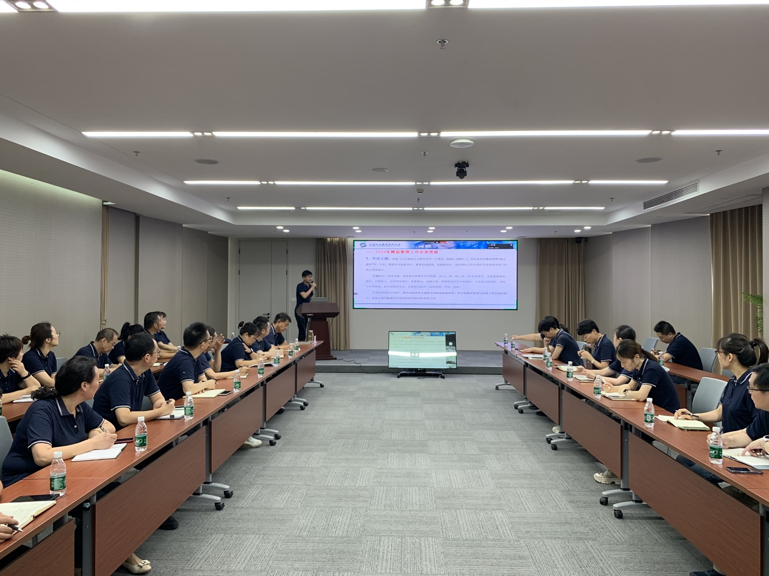 集团公司副总经理陈建主持会议,并总结汇报上半年度全员微创新(Kaizen)、现场改善提升(5S/TPM)、项目管理(SGA/SDA)等重点工作落实开展及总体推进情况,查摆剖析工作中存在的问题和不足,并对下半年工作进行具体部署。