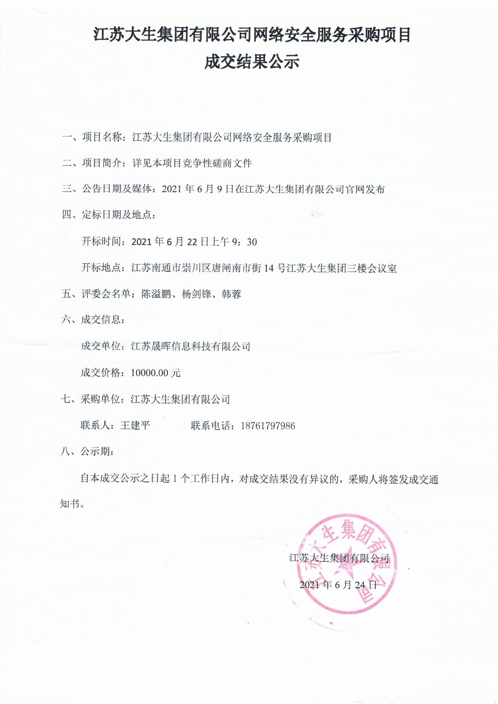 3044am永利网络安全服务采购项目成交结果公示
